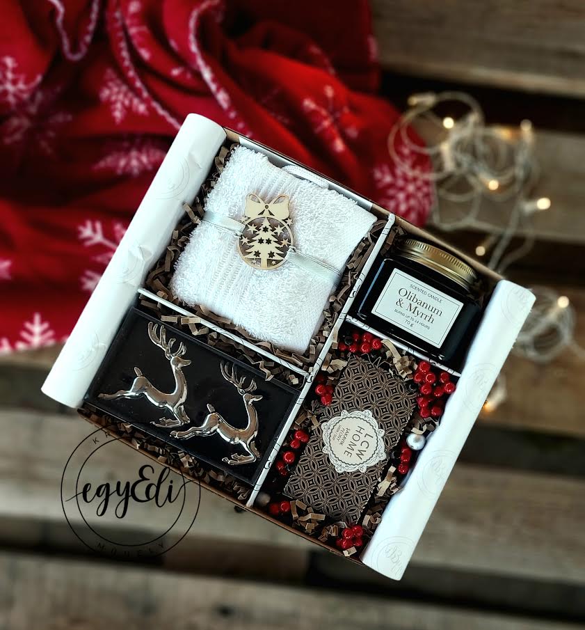 Egy csodás karácsonyi fürdő kelléktár, egy pár ünnepi asztaldísszel.